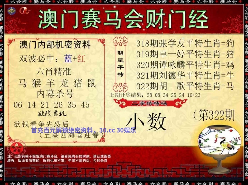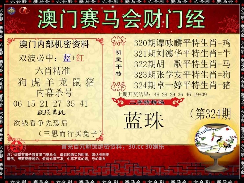 320期:💎两波中特╠蓝绿开:虎28准